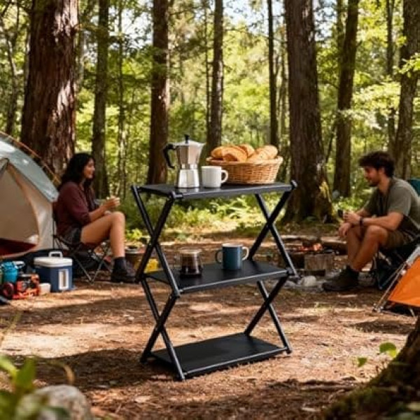 Genérico Camping Shelves | Foldable and Portable Stand with 3 Tiers | Desk Shelf for Tent, Picnic, Hiking, Backpacking, Patio, Barbecue, Garden