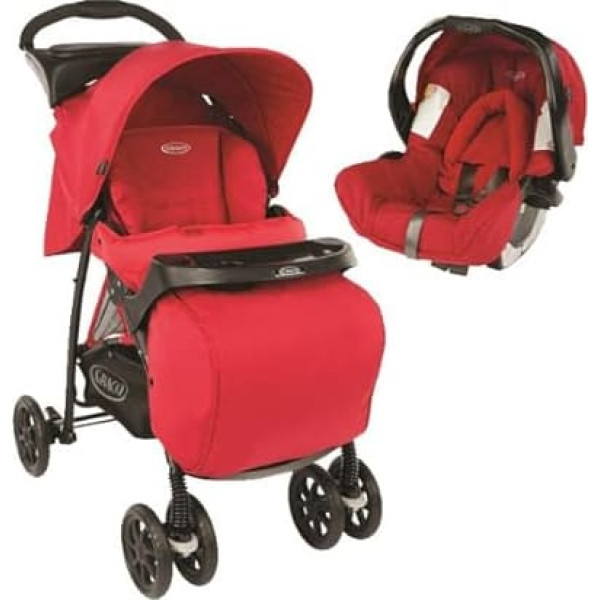 Minimum age: 0 months Product description : The Graco travel system is the best value for money. The fauna is lightweight, compact and folds in just 1 second. An ideal travel system at an unbeatable price. High-quality and robust frame that guarantees safety and comfort for the child. The quick fold system allows you to fold the stroller in one second with a simple hand movement / Compact folds for easy storage / Includes: child car seat, parent tray and apron / Folded dimensions: 92 x 49 x 103 cm / Folded dimensions 36 x 49 x 86 cm / Weight 7.1 kg Dimensions: 92 x 49 x 103 cm › See more product details; Product description mirage The Graco Mirage pushchair is simple, lightweight and very practical. The very robust yet extremely lightweight chassis in combination with the wheels guarantees high safety and stability. Manoeuvrability is ensured by two double, swivelling and lockable front wheels. Travel System Like many Graco pushchairs, the Mirage is equipped with the travel system. The Graco travel system allows the baby to be transported to the pram or directly into the house without waking it up sitting in his child seat. The group 0+/1 child seat has been awarded and received the result of 4 stars from the ADAC (Institute Crash European Tests). The Junior Baby is included in the TS package. Comfortable and practical The Graco Mirage offers the baby the necessary comfort with 3 tilt positions, the wide and adjustable sun canopy and the padded seat. It is also very practical, lightweight and handy, it is an ideal travel companion for an afternoon shopping or just for shopping. Safety Conforms to EN 1888:2003, the high-quality chassis and 5-point safety belt ensure a quiet walk. Features: Conforms to EN 1888:2003 High-quality chassis. 5-point safety belt. Fabrics tested for toxicity and flammability. Resistant colours. Can be tilted 3 times. Wide and adjustable sun canopy with UV protection. Padded seat Apron incl. Handy and compact pushchair. Large basket Fixed and rotating wheels. Compatible with travel system with the included child seat. Compact folding with one hand Lightweight 7.1 kg. Dimensions when open: 103 x 49 x 92 cm. Dimensions when folded: 86 x 36 x 49 cm. Evo Mosaic Mirage Citisport Lite Trekko suitable from birth ✓ tilt angle 3 3 3 multi 4 reversible seat ✓ travel system ✓ ✓ ✓ includes accessories rain cover. Footmuff Car Seat Adapter Rain Cover Apron *Solo version: none. *Version 2: Parent Tablet and Apron Rain Cover Footmuff Storage bag for wheels weight (kg) 9.5 10.6 7.1 6.1 13.8 cm open D x W x H in cm 86 x 60 x 102 92 x 49 x 103 92 x 49 x 103 68 x 45 x 102 107 x 7 cm 5 x 12 4 dimensions when closed D x W x H in cm 41 x 60 x 106 cm 34 x 41 x 95 cm 36 x 49 x 86 cm 30 x 45 x 85 cm 57 x 75 x 106 cm; Product description mirage The Graco Mirage pushchair is simple, lightweight and very practical. The very robust yet extremely lightweight chassis in combination with the wheels guarantees high safety and stability. Manoeuvrability is ensured by two double, swivelling and lockable front wheels. Travel System Like many Graco pushchairs, the Mirage is equipped with the travel system. The Graco travel system allows the baby to be transported to the pram or directly into the house without waking it up sitting in his child seat. The group 0+/1 child seat has been awarded and received the result of 4 stars from the ADAC (Institute Crash European Tests). The Junior Baby is included in the TS package. Comfortable and practical The Graco Mirage offers the baby the necessary comfort with 3 tilt positions, the wide and adjustable sun canopy and the padded seat. It is also very practical, lightweight and handy, it is an ideal travel companion for an afternoon shopping or just for shopping. Safety Conforms to EN 1888:2003, the high-quality chassis and 5-point safety belt ensure a quiet walk. Features: Conforms to EN 1888:2003 High-quality chassis. 5-point safety belt. Fabrics tested for toxicity and flammability. Resistant colours. Can be tilted 3 times. Wide and adjustable sun canopy with UV protection. Padded seat Apron incl. Handy and compact pushchair. Large basket Fixed and rotating wheels. Compatible with travel system with the included child seat. Compact folding with one hand Lightweight 7.1 kg. Dimensions when open: 103 x 49 x 92 cm. Dimensions when folded: 86 x 36 x 49 cm. Evo Mosaic Mirage Citisport Lite Trekko suitable from birth ✓ tilt angle 3 3 3 multi 4 reversible seat ✓ travel system ✓ ✓ ✓ includes accessories rain cover. Footmuff Car Seat Adapter Rain Cover Apron *Solo version: none. *Version 2: Parent Tablet and Apron Rain Cover Footmuff Storage bag for wheels weight (kg) 9.5 10.6 7.1 6.1 13.8 cm open D x W x H in cm 86 x 60 x 102 92 x 49 x 103 92 x 49 x 103 68 x 45 x 102 107 x 7 cm 5 x 12 4 dimensions when closed D x W x H in cm 41 x 60 x 106 cm 34 x 41 x 95 cm 36 x 49 x 86 cm 30 x 45 x 85 cm 57 x 75 x 106 cm; mirage The Graco Mirage pushchair is simple, lightweight and very practical. The very robust yet extremely lightweight chassis in combination with the wheels guarantees high safety and stability. Manoeuvrability is ensured by two double, swivelling and lockable front wheels. Travel System Like many Graco pushchairs, the Mirage is equipped with the travel system. The Graco travel system allows the baby to be transported to the pram or directly into the house without waking it up sitting in his child seat. The group 0+/1 child seat has been awarded and received the result of 4 stars from the ADAC (Institute Crash European Tests). The Junior Baby is included in the TS package. Comfortable and practical The Graco Mirage offers the baby the necessary comfort with 3 tilt positions, the wide and adjustable sun canopy and the padded seat. It is also very practical, lightweight and handy, it is an ideal travel companion for an afternoon shopping or just for shopping. Safety Conforms to EN 1888:2003, the high-quality chassis and 5-point safety belt ens