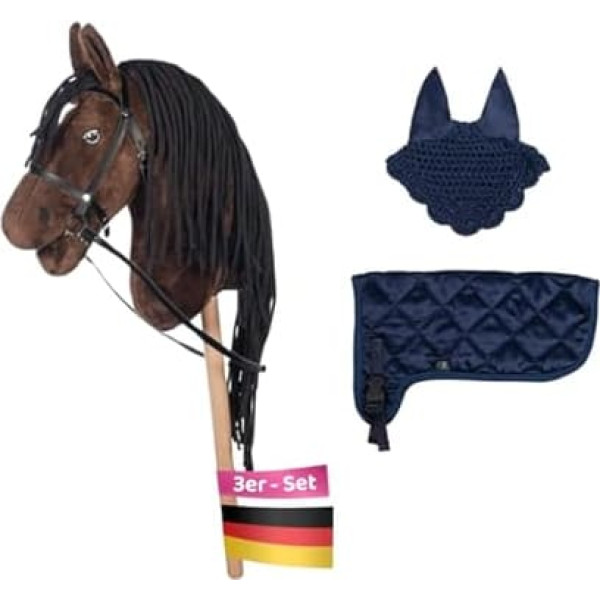 Komplettes Set mit HKM Hobby Horse, passender Fliegenhaube und abgestimmter Decke für ein einheitliches Outfit Kinderfreundlich und leicht mit circa 650 g Gewicht und Holzstange von circa 40 cm ideal für kleine Reiterhände Hochwertige Materialien mit robustem Polyesterkopf, Trense aus Polyurethan und pflegeleichter Fliegenhaube waschbar bei 30 Grad Sicherer Sitz beim Spielen durch Decke mit Gurt und Schnalle sowie Fliegenhaube mit Klettverschluss kombinierbar mit Trense oder Halfter Geprüfte Spielzeugsicherheit nach europäischen Richtlinien nicht geeignet für Kinder unter drei Jahren wegen Kleinteilen und langer Schnur › See more product details; Product description Product description Dieses Set besteht aus einem HKM Hobby Horse, einer passenden Fliegenhaube und einer Decke für das Steckenpferd. Damit erhältst du ein komplettes Zubehör Paket für realistische Reiterspiele und kreatives Hobby Horsing. Das Hobby Horse ist leicht, robust und speziell für Kinderhände gemacht. Der Kopf besteht aus widerstandsfähigem Polyester, die Trense aus Polyurethan und die Holzstange sorgt für sicheren Halt beim Spielen. Die Trense ist unterhalb der Ohren angenäht und kann bei Bedarf vorsichtig mit einer Schere entfernt werden. Die Fliegenhaube wird über die Ohren des Steckenpferdes gezogen und mit Klettverschluss fixiert. Sie sitzt sicher, ist dekorativ und kann mit Trense oder Halfter kombiniert werden. Die Haube ist waschbar bei 30 Grad und gut für den regelmäßigen Einsatz im Kinderzimmer geeignet. Die Hobby Horse Decke wird um den Hals gelegt, auf den Rücken gelegt und mit Schnalle und Gurt geschlossen. Dadurch sitzt sie sicher beim Spielen und verrutscht nicht. Safety Warning Nicht für Kinder unter 36 Monaten geeignet, Erstickungsgefahr durch Kleinteile, Strangulationsgefahr durch lange Schnur. Von offenem Feuer und Wärmequellen fernhalten.; Product description Product description Dieses Set besteht aus einem HKM Hobby Horse, einer passenden Fliegenhaube und einer Decke für das Steckenpferd. Damit erhältst du ein komplettes Zubehör Paket für realistische Reiterspiele und kreatives Hobby Horsing. Das Hobby Horse ist leicht, robust und speziell für Kinderhände gemacht. Der Kopf besteht aus widerstandsfähigem Polyester, die Trense aus Polyurethan und die Holzstange sorgt für sicheren Halt beim Spielen. Die Trense ist unterhalb der Ohren angenäht und kann bei Bedarf vorsichtig mit einer Schere entfernt werden. Die Fliegenhaube wird über die Ohren des Steckenpferdes gezogen und mit Klettverschluss fixiert. Sie sitzt sicher, ist dekorativ und kann mit Trense oder Halfter kombiniert werden. Die Haube ist waschbar bei 30 Grad und gut für den regelmäßigen Einsatz im Kinderzimmer geeignet. Die Hobby Horse Decke wird um den Hals gelegt, auf den Rücken gelegt und mit Schnalle und Gurt geschlossen. Dadurch sitzt sie sicher beim Spielen und verrutscht nicht. Safety Warning Nicht für Kinder unter 36 Monaten geeignet, Erstickungsgefahr durch Kleinteile, Strangulationsgefahr durch lange Schnur. Von offenem Feuer und Wärmequellen fernhalten.; Product description Dieses Set besteht aus einem HKM Hobby Horse, einer passenden Fliegenhaube und einer Decke für das Steckenpferd. Damit erhältst du ein komplettes Zubehör Paket für realistische Reiterspiele und kreatives Hobby Horsing. Das Hobby Horse ist leicht, robust und speziell für Kinderhände gemacht. Der Kopf besteht aus widerstandsfähigem Polyester, die Trense aus Polyurethan und die Holzstange sorgt für sicheren Halt beim Spielen. Die Trense ist unterhalb der Ohren angenäht und kann bei Bedarf vorsichtig mit einer Schere entfernt werden. Die Fliegenhaube wird über die Ohren des Steckenpferdes gezogen und mit Klettverschluss fixiert. Sie sitzt sicher, ist dekorativ und kann mit Trense oder Halfter kombiniert werden. Die Haube ist waschbar bei 30 Grad und gut für den regelmäßigen Einsatz im Kinderzimmer geeignet. Die Hobby Horse Decke wird um den Hals gelegt, auf den Rücken gelegt und mit Schnalle und Gurt geschlossen. Dadurch sitzt sie sicher beim Spielen und verrutscht nicht. Safety Warning Nicht für Kinder unter 36 Monaten geeignet, Erstickungsgefahr durch Kleinteile, Strangulationsgefahr durch lange Schnur. Von offenem Feuer und Wärmequellen fernhalten.