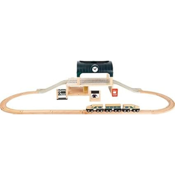 FSC 100 percent: this product is made entirely of wood from FSC certified forests The special feature - the passage station has two floors and has an open roof for comfortable playing Two tracks can be laid on the upper level of the station, and up to four tracks on the lower level Perfectly expands and complements the small foot world range, but can also be combined with other, standard rail systems Includes authentic accessories such as a kiosk, a ticket machine, a station clock with rotating hands, a scoreboard that can be written on with chalk and a wooden express train › See more product details