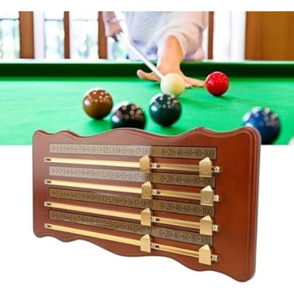 Quality Material This billiard scoreboard is made of wood and aluminum alloy skilfully made of wood and aluminum alloy, and is designed to be sturdy and reliable. It delivers guaranteed quality with a build that resists even with long-term use. 4 Lane: The scoreboard features a 4-track design that increases the functionality of any billiard game. With clear and easy reading, it promises to improve match efficiency. ESSENTIAL BILLIARD ACCESSORY This superb quality owner is a must have for any pool game. It is ideal for a variety of game settings that can strengthen the quality of the gameplay. REFINED CRAFTSMANSHIP The Scorekeeper offers superior workmanship and features a minimalist and stylish exterior. It contributes to the competitive atmosphere and serves as a centrepiece on the pool table. EASY INSTALLATION & STORAGE This scoreboard is not only easy to install, but also easy to carry and store. This makes it a comfortable companion for competitions or leisure outings. › See more product details; Product description Spec: Item type: billiard score keeper. Material: solid wood + aluminium alloy. Box contents: 1 x billiard scoreboard. 2 x screws. 2 x screw caps.; Product description Spec: Item type: billiard score keeper. Material: solid wood + aluminium alloy. Box contents: 1 x billiard scoreboard. 2 x screws. 2 x screw caps.; Spec: Item type: billiard score keeper. Material: solid wood + aluminium alloy. Box contents: 1 x billiard scoreboard. 2 x screws. 2 x screw caps.