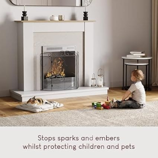 Fire Vida Tapton 3 Panel Fire Screen/Spark Fire Guard, Metal, Black