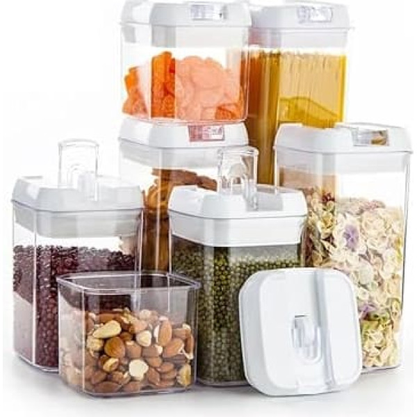 GRANZ Airtight Food Storage Containers, Pack of 7, Food Storage Containers with Lids, Kitchen Storage & Organisation, Food Container Set, Cereal & Dry Food Storage Containers for Sugar, Flour