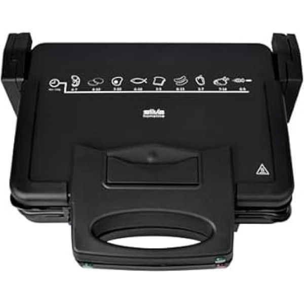 Powerful heating: the Silva Homeline KG 2410 contact grill with 1700 watts ensures fast and even heat distribution. Perfect results for any barbecue, whether steak, panini or vegetables. GENEROUS GRILLING SURFACE With a grill surface of 8 x 12 inches, you can prepare multiple portions at the same time, great for family meals or guests. NON-STICK & REMOVABLE GRILL PLATES The special non-stick griddles prevent sticking and allow for easy cleaning. Plates are removable and dishwasher safe. Flexible grill options: Thanks to the two separate thermostat controllers, you can adjust the temperature individually. Use the contact grill for one-sided or two-sided grilling as well as the practical baking function. Convenient Features for Easy Use The contact grill features a grease drain channel to reduce grease and an integrated cable reel. With the 180° folding function, you can also use it as a table grill. › See more product details
