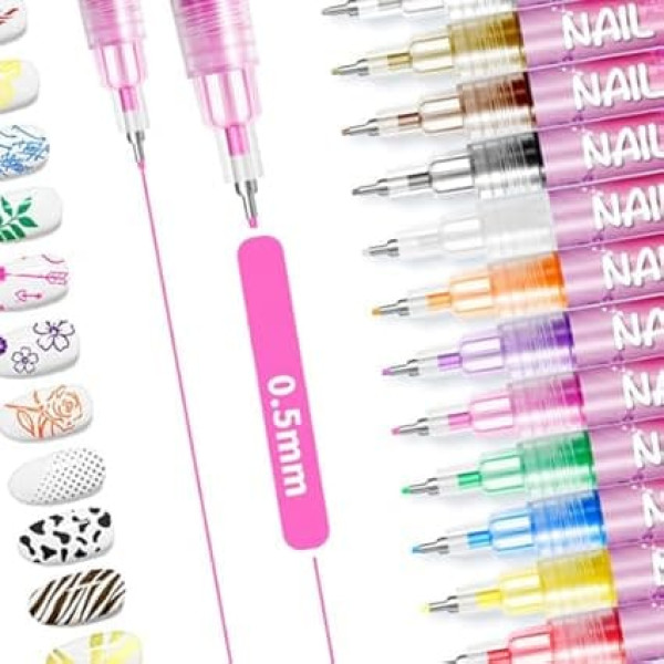 DIY nail art marker: use this colourful nail pen set to make different decorations on the nail tips, perfect for dots, abstract lines, fine drawings and different pattern designs on the nails 12 BRIGHT COLORS Our nail art pen has 12 classic colors to choose from. Sufficient quantity and different colours can meet your different needs, you can let your imagination run wild for nail design DIY Nail Designs:Let your creativity run wild with these DIY nail polish pens, which give you endless design possibilities for any occasion. Whether you are creating simple dots and lines or more elaborate 3D nail art, you can easily customise each manicure - without a visit to the nail salon. Long-lasting and durable: the high-quality acrylic nail polish pens impress with their long durability and shatter-free colours that are water and heat resistant. The powerful pigmentation ensures a brilliant, lasting result - perfect for everyday use or special occasions. EASY CARE TIPS To ensure an even ink flow, always seal your nail art markers with the cap after use. When first activating, lightly press the tip until the ink starts to flow. › See more product details; Product description Product description 12 colours nail art pen set, nail art marker for gel nails, nail polish pen set, nail pens for nails children - waterproof and quick-drying, non-fading, for beginners. Features: 12 bold, quick drying colours Ultra fine 0.5mm tip for perfect detail Ideal for lines, dots, patterns & mini designs Perfect for beginners and professionals No bleeding, no mess Specifications: Name: Nail Art Marker Colour: 12 colours. Size (1 set): 14.3 x 14.5 x 1.2 cm. Package includes: 1/2 set(s) x nail polish pens Safety Warning 1; Product description Product description 12 colours nail art pen set, nail art marker for gel nails, nail polish pen set, nail pens for nails children - waterproof and quick-drying, non-fading, for beginners. Features: 12 bold, quick drying colours Ultra fine 0.5mm tip for perfect detail Ideal for lines, dots, patterns & mini designs Perfect for beginners and professionals No bleeding, no mess Specifications: Name: Nail Art Marker Colour: 12 colours. Size (1 set): 14.3 x 14.5 x 1.2 cm. Package includes: 1/2 set(s) x nail polish pens Safety Warning 1; Product description 12 colours nail art pen set, nail art marker for gel nails, nail polish pen set, nail pens for nails children - waterproof and quick-drying, non-fading, for beginners. Features: 12 bold, quick drying colours Ultra fine 0.5mm tip for perfect detail Ideal for lines, dots, patterns & mini designs Perfect for beginners and professionals No bleeding, no mess Specifications: Name: Nail Art Marker Colour: 12 colours. Size (1 set): 14.3 x 14.5 x 1.2 cm. Package includes: 1/2 set(s) x nail polish pens Safety Warning 1