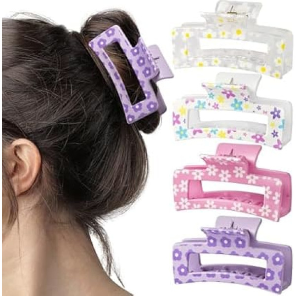 PANTIDE Spring Flower Hair Clips for Women Girls Cute Flower Rectangle Non-Slip Banana Hair Clips Thin Thick Short Long Curly Hair Accessories Spring Summer Party