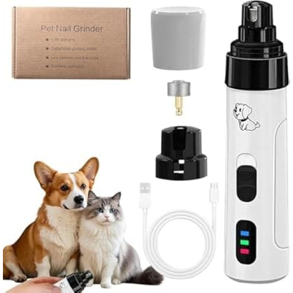 TrimNox Pro: equipped with three claw grinding interfaces and two speed settings, it can precisely and easily cut perfect nails for pets of all sizes Quiet Dog Nail Clipper:Low noise motor + anti-slip handle minimizes vibration. The noise level during use is less than 40 decibels, which can effectively reduce anxiety and stress noise in dogs during trimming. It is very suitable for dogs and cats. ERGONOMIC DESIGN The pet nail grinder is ergonomically designed and fits comfortably and easily in your hand. Whether you are right or left handed, the lightweight and portable design ensures that you can work comfortably and easily while trimming without harming your pet. Rechargeable & Portable The pet nail clipper is small and easy to carry. Say goodbye to the hassle of frequent battery changes! It can be used for up to 8 hours after a full charge and the battery life is long TREAT YOUR PET'S NAILS REGULARLY - Regular cutting of nails can keep your pet healthy and help keep your dog's nails at an ideal length. This avoids discomfort, mobility problems and potential problems caused by too long nails. The TrimNox Pro Nail Grinder saves money and time › See more product details; Product description Product Name: 2 Stage Pet Claw Grinder Case material: environmentally friendly ABS Speeds: 7000 rpm (1st gear), 8000 rpm (2nd gear). Battery capacity: 800 mAh. Charging time: approx. 1.5 hours. Battery life: approx. 8 hours. Charging method: dual channel (plug and charge). Noise level: approx. 50 dB. Grinding Wheel Type: Replaceable Grinding Head Weight per grinding head: 8 g Dimensions / weight of the main unit: 3.2 x 3.2 x 13.8 cm, 102.3 g. Dimensions/weight of standard kit: 17.8 x 10.8 x 4 cm, 180 g Functions and features: 1. Two speeds, up to 8000 rpm, for optimal claw grinding efficiency. 2. Three different claw grinding holes, suitable for pets of different sizes. 3. Built-in 800mAh high capacity battery for 8 hours working time on full charge. 4. Includes USB charging cable for convenient charging, connect to laptop, power supply or power bank. 5. Extremely quiet, soothes pets and helps sharpen claws faster and easier.; Product description Product Name: 2 Stage Pet Claw Grinder Case material: environmentally friendly ABS Speeds: 7000 rpm (1st gear), 8000 rpm (2nd gear). Battery capacity: 800 mAh. Charging time: approx. 1.5 hours. Battery life: approx. 8 hours. Charging method: dual channel (plug and charge). Noise level: approx. 50 dB. Grinding Wheel Type: Replaceable Grinding Head Weight per grinding head: 8 g Dimensions / weight of the main unit: 3.2 x 3.2 x 13.8 cm, 102.3 g. Dimensions/weight of standard kit: 17.8 x 10.8 x 4 cm, 180 g Functions and features: 1. Two speeds, up to 8000 rpm, for optimal claw grinding efficiency. 2. Three different claw grinding holes, suitable for pets of different sizes. 3. Built-in 800mAh high capacity battery for 8 hours working time on full charge. 4. Includes USB charging cable for convenient charging, connect to laptop, power supply or power bank. 5. Extremely quiet, soothes pets and helps sharpen claws faster and easier.; Product Name: 2 Stage Pet Claw Grinder Case material: environmentally friendly ABS Speeds: 7000 rpm (1st gear), 8000 rpm (2nd gear). Battery capacity: 800 mAh. Charging time: approx. 1.5 hours. Battery life: approx. 8 hours. Charging method: dual channel (plug and charge). Noise level: approx. 50 dB. Grinding Wheel Type: Replaceable Grinding Head Weight per grinding head: 8 g Dimensions / weight of the main unit: 3.2 x 3.2 x 13.8 cm, 102.3 g. Dimensions/weight of standard kit: 17.8 x 10.8 x 4 cm, 180 g Functions and features: 1. Two speeds, up to 8000 rpm, for optimal claw grinding efficiency. 2. Three different claw grinding holes, suitable for pets of different sizes. 3. Built-in 800mAh high capacity battery for 8 hours working time on full charge. 4. Includes USB charging cable for convenient charging, connect to laptop, power supply or power bank. 5. Extremely quiet, soothes pets and helps sharpen claws faster and easier.