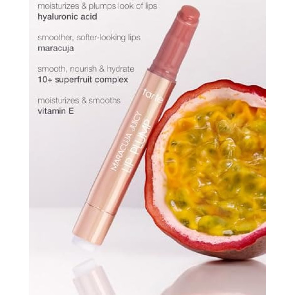 Tarte Passion Fruit Juicy Lip Plump Colour: Honeysuckle (Black Cherry) Size:2.7g All-in-1 Plumping Balm, Shine, Colour and Treatment International products have separate terms, are sold from abroad and may differ from local products, including fit, age ratings, and language of product, labeling or instructions. › See more product details; Product description Product description Tarte Passion Fruit Juicy Lip Shift is a multifunctional lip product that combines the benefits of a plumping balm, a shiny shine and a moisturising treatment. Its unique pH based formula allows the universal shades to change colour and create your perfect lip tone while soaking your lips in a stained glass-like shine. Infused with hyaluronic acid and more than 10 superfruits, this 2.7g lip balm helps to achieve a plumper, fuller pout. Treat yourself to this all-in-one lip saver that nourishes, improves and adds a juicy pop of color. Directions Wipe the lip balm back and forth on your lips and apply it to both the upper and lower lips Safety Warning Discontinue use if allergic reactions occur. See more; Product description Product description Tarte Passion Fruit Juicy Lip Shift is a multifunctional lip product that combines the benefits of a plumping balm, a shiny shine and a moisturising treatment. Its unique pH based formula allows the universal shades to change colour and create your perfect lip tone while soaking your lips in a stained glass-like shine. Infused with hyaluronic acid and more than 10 superfruits, this 2.7g lip balm helps to achieve a plumper, fuller pout. Treat yourself to this all-in-one lip saver that nourishes, improves and adds a juicy pop of color. Directions Wipe the lip balm back and forth on your lips and apply it to both the upper and lower lips Safety Warning Discontinue use if allergic reactions occur. See more; Product description Tarte Passion Fruit Juicy Lip Shift is a multifunctional lip product that combines the benefits of a plumping balm, a shiny shine and a moisturising treatment. Its unique pH based formula allows the universal shades to change colour and create your perfect lip tone while soaking your lips in a stained glass-like shine. Infused with hyaluronic acid and more than 10 superfruits, this 2.7g lip balm helps to achieve a plumper, fuller pout. Treat yourself to this all-in-one lip saver that nourishes, improves and adds a juicy pop of color. Directions Wipe the lip balm back and forth on your lips and apply it to both the upper and lower lips Safety Warning Discontinue use if allergic reactions occur. See more
