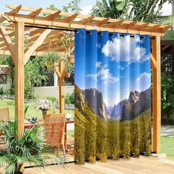 Super windproof: the top and bottom of the curtain with ruffle tape have stainless steel eyelets (inner diameter 4 cm). So you can attach outdoor curtains more efficiently. This design is also designed to withstand stronger winds. Excellent fabric: they are made of quality 100% polyester, higher density and more comfortable to touch. The curtains look elegant, strong and durable and highly water resistant. They can also be used as shower curtains as well as dividers for public spaces indoors and outdoors. Vivid printing: the high-resolution digital printing technology offers many pattern options, giving you a summer and fresh look. These colors will never go out of style and are a high quality decoration for your house that at the same time conveys a real sense of demarcation and privacy. INSTALLATION RECOMMENDATIONS For proper fullness, panels should be 1.5 to 2 times the width of your rod. Different sizes of curtains have different metal eyelets 4/6/8/10 (specific reference size). The height refers to the height of the entire curtain, reducing the height from the top hole to the bottom hole by 4 cm. Please allow 1-2cm error due to manual measurement. Wide compatibility: privacy curtains for indoor and outdoor use are perfect for indoor spaces such as living room, bedroom and dining room, but also perfect for outdoor use such as patio, garden, pergola, porch, patio, gazebo and more. The transparent outdoor curtains can also fit other opaque outdoor curtains well. › See more product details; Product description Sheer curtains for indoor and outdoor use with grommets Features 1. Waterproof Fabric The curtain made of waterproof material can prevent water from penetrating to keep your garden furniture dry in rainy or snowy days. They can also be used as shower curtains as well as a room divider indoors and outdoors. 2. Light Filtering The outdoor waterproof curtains for patio can block 60-75% sunlight and work well as thermal insulation in hot summer afternoons and cold winter days. It also provides privacy that benefits you and your neighbors. 3. GOOD PERFORMANCE The privacy curtains outdoor fit for both indoor and outdoor use. Perfect for outdoor use such as patio, pergola, porch, deck, gazebo and more. 4. 3D printing: outdoor curtain prints are clear and realistic, with perfect colour matching and offer you the best visual experience. 5.EASY CARE:Outdoor blackout curtains are machine washable in gentle cycle and cold water. Do not bleach. Tumble dry low and cool iron if needed. Package includes: 1 x curtains. Note: 1. Due to the different light and screen settings, the colour may differ slightly from the pictures. 2. Due to manual measurement, please allow 1-3 cm difference.; Product description Sheer curtains for indoor and outdoor use with grommets Features 1. Waterproof Fabric The curtain made of waterproof material can prevent water from penetrating to keep your garden furniture dry in rainy or snowy days. They can also be used as shower curtains as well as a room divider indoors and outdoors. 2. Light Filtering The outdoor waterproof curtains for patio can block 60-75% sunlight and work well as thermal insulation in hot summer afternoons and cold winter days. It also provides privacy that benefits you and your neighbors. 3. GOOD PERFORMANCE The privacy curtains outdoor fit for both indoor and outdoor use. Perfect for outdoor use such as patio, pergola, porch, deck, gazebo and more. 4. 3D printing: outdoor curtain prints are clear and realistic, with perfect colour matching and offer you the best visual experience. 5.EASY CARE:Outdoor blackout curtains are machine washable in gentle cycle and cold water. Do not bleach. Tumble dry low and cool iron if needed. Package includes: 1 x curtains. Note: 1. Due to the different light and screen settings, the colour may differ slightly from the pictures. 2. Due to manual measurement, please allow 1-3 cm difference.; Sheer curtains for indoor and outdoor use with grommets Features 1. Waterproof Fabric The curtain made of waterproof material can prevent water from penetrating to keep your garden furniture dry in rainy or snowy days. They can also be used as shower curtains as well as a room divider indoors and outdoors. 2. Light Filtering The outdoor waterproof curtains for patio can block 60-75% sunlight and work well as thermal insulation in hot summer afternoons and cold winter days. It also provides privacy that benefits you and your neighbors. 3. GOOD PERFORMANCE The privacy curtains outdoor fit for both indoor and outdoor use. Perfect for outdoor use such as patio, pergola, porch, deck, gazebo and more. 4. 3D printing: outdoor curtain prints are clear and realistic, with perfect colour matching and offer you the best visual experience. 5.EASY CARE:Outdoor blackout curtains are machine washable in gentle cycle and cold water. Do not bleach. Tumble dry low and cool iron if needed. Package includes: 1 x curtains. Note: 1. Due to the different light and screen settings, the colour may differ slightly from the pictures. 2. Due to manual measurement, please allow 1-3 cm difference.