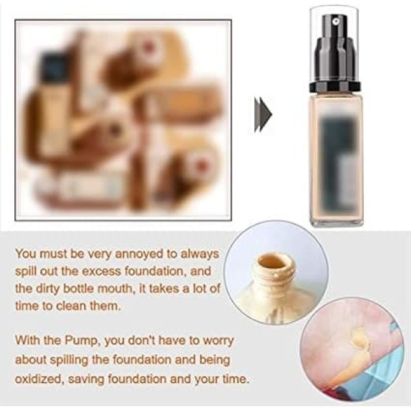 The latest improved air pump. Without built-in spring, so there is no contamination of the primer by rust. There are 2 pieces cleaning paper towels in the package. You can use it to clean the pump. The press pump makes it easier to control the amount. No more worrying about spilling foundation. Through electroplating production process, the quality is very good. Designed for Maybelline Fit Me, the length of the tube is just right. (Note: it is not an original pump for Maybelline) Tips: put the tube into the water for testing before use. It takes about 20-30 times to press. Master the strength of the press and install it on the bottle. › See more product details; Product description Instructions: 1. Remove the cap from the pump. 2. Screw the pump firmly to the bottle. 3. Press the pump a few times before the primer comes out for the first time. 4. Simply press and dispense as much as you need. Note before use: By pressing the pump with your thumb, you have better control than pressing with your index finger.; Product description Instructions: 1. Remove the cap from the pump. 2. Screw the pump firmly to the bottle. 3. Press the pump a few times before the primer comes out for the first time. 4. Simply press and dispense as much as you need. Note before use: By pressing the pump with your thumb, you have better control than pressing with your index finger.; Instructions: 1. Remove the cap from the pump. 2. Screw the pump firmly to the bottle. 3. Press the pump a few times before the primer comes out for the first time. 4. Simply press and dispense as much as you need. Note before use: By pressing the pump with your thumb, you have better control than pressing with your index finger.