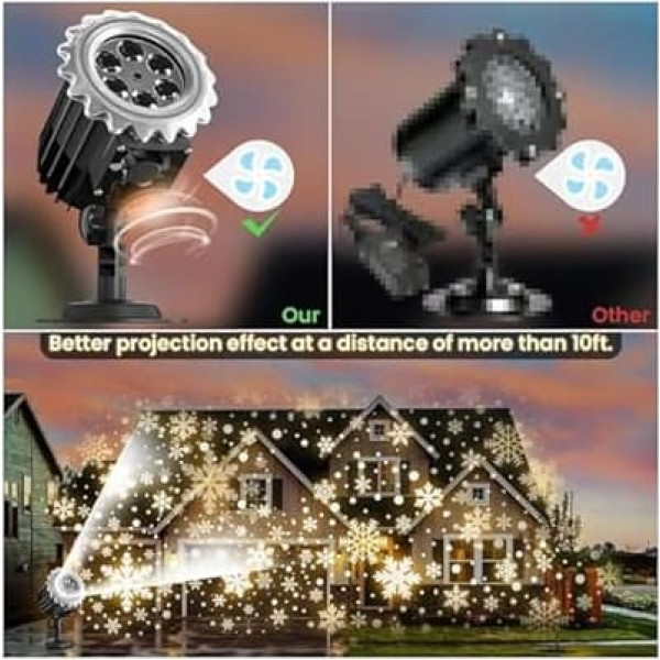 Upgraded Coverage The upgraded snowflake lamp lights up at 9W, providing twice the brightness of conventional 5W bulbs. It projects realistic snowflake effects over a larger area with greater brightness. Experience stunning snowflake depictions with the combination \; Product description About this item: LED: white pearl light source. Operating mode: automatic with fan. Shell material: technical plastic ABS, PC black. Waterproof level of power supply: IP44. Waterproof level of the lamp body: IP44. Power supply: 14V/0.64mA Power: 9 W. Length of power cable: 5 metres of cable. Accessories: small chassis, small ground plug, screw package, expansion screw package, manual. Power cord length: 5 m. PERFECT CHRISTMAS DECORATION The LED snow projector is an excellent W choice for indoor and outdoor Christmas decorations. It creates a romantic atmosphere that enhances your environment.; Product description About this item: LED: white pearl light source. Operating mode: automatic with fan. Shell material: technical plastic ABS, PC black. Waterproof level of power supply: IP44. Waterproof level of the lamp body: IP44. Power supply: 14V/0.64mA Power: 9 W. Length of power cable: 5 metres of cable. Accessories: small chassis, small ground plug, screw package, expansion screw package, manual. Power cord length: 5 m. PERFECT CHRISTMAS DECORATION The LED snow projector is an excellent W choice for indoor and outdoor Christmas decorations. It creates a romantic atmosphere that enhances your environment.; About this item: LED: white pearl light source. Operating mode: automatic with fan. Shell material: technical plastic ABS, PC black. Waterproof level of power supply: IP44. Waterproof level of the lamp body: IP44. Power supply: 14V/0.64mA Power: 9 W. Length of power cable: 5 metres of cable. Accessories: small chassis, small ground plug, screw package, expansion screw package, manual. Power cord length: 5 m. PERFECT CHRISTMAS DECORATION The LED snow projector is an excellent W choice for indoor and outdoor Christmas decorations. It creates a romantic atmosphere that enhances your environment.