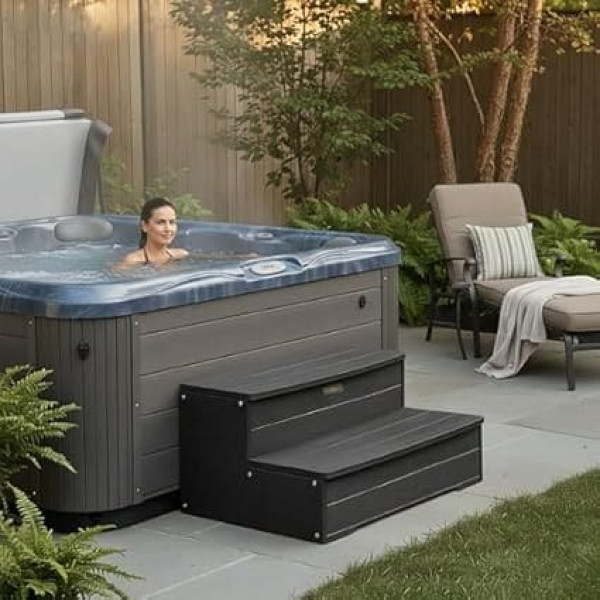 63,5 cm große Whirlpool-Stufen, robuste Whirlpool-Treppe, Holzoptik, HDPS, für den Außenbereich, wasserdicht, vielseitig verwendbar, rutschfest, für den Innen- und Außenbereich, Schwarz