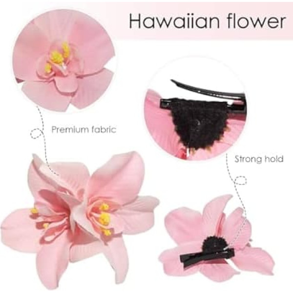 FLOWER HAIR PIN There are 6 flower hair clips in our set, each of which has a different color, purple, red, white, pink, green and orange. 6 colours to match your different clothing styles and highlight different charms. Durable Material Our Hawaiian flower hair clip is made of high quality fabric and metal clip. Soft, lightweight, deformation resistant and can hold your hair well. Flower hair clips in different colours can be matched with different clothing styles. MULTIPURPOSE Artificial flower hair clips can be applied to any hairstyle. It can also be worn in backpacks, clothes, hats and other places. Beautiful flowers can attract everyone's attention and give people a romantic feeling. MULTIPURPOSE Our multicolor hair pins can be used in a variety of uses. They are suitable for everyday use such as shopping and walking. You can also wear them at weddings, holidays, holidays and parties, which makes you more attractive. Beach Style Hair Clip:The beautiful and elegant flower image can be matched with different outfits and can be worn on different occasions, which is more charming and attractive. This is a hair accessory that is suitable for girls and is a great gift for your friends, colleagues, classmates and family. › See more product details; Product description Flower Hair Clip; Product description Flower Hair Clip; Flower Hair Clip