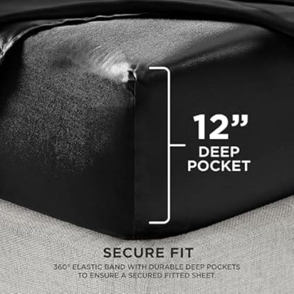 Juicy Couture Satin Sheet Set Double Deep Pockets Silky Twin XL Bedding Set with 1 Fitted Sheet, 1 Flat Sheet, 1 Pillowcase, Wrinkle Resistant and Anti Pilling, Black