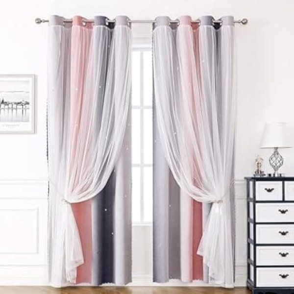 Package contents: 2 piece set, width 132 cm x curtains 214 cm long for each piece. (The height is measured from the top of the eyelets. These curtains are particularly practical. It is suitable for most curtain rods on the market. You can slide these curtains smoothly. Curtains children's room, thermal curtain against heat, blackout curtain children's room girls curtains children's room boy, curtain short, curtain transparent, curtain children's room boy, modern curtains, darkening curtains with eyelets Amazing design: the stars are made of hollow-out, which creates a shimmering effect in sunlight, and the outer layer of light gauze is airy and soft and contributes to the romantic mood. The double layer star curtains bring the room more magical and dreamy, at the same time protect your privacy better. Opaque curtains bedroom, light curtain grey curtains pink curtain pink curtains white, sun protection curtain boho curtain with eyelets Ideal for living room, bedroom, children's room/nursery and etc. When you pull these star curtains, light floods through the hollow stars the floor and walls, like sparkling starry sky, creates a warm and sweet atmosphere. Curtains living room, room divider curtain darkening, outdoor curtains with loops, outdoor curtains short, balcony curtain, caravan curtains kitchen, kitchen curtains short, outdoor curtain with eyelets, rails curtains curtain sound-absorbing, curtains opaque Blackout curtain material: blackout curtains are made of lightweight gauze polyester. They are soft, draped, elegant and feel very smooth, light blocked, heat insulated, sound-absorbing, energy-saving, not easy to fade. Make the room not so hot in summer and bring your children a relatively dark environment and a good sleep. Thermal curtain against cold, curtain outdoor curtain heat protection, balcony door curtain Christmas, opaque curtains eyelets curtains without drilling Warm tips: machine or hand washable (up to 30 degrees) and iron at low temperature, do not bleach. For further questions, we are always at your disposal and give you a satisfactory answer. Opaque curtain, curtains children's room boy, curtain white curtains, boho curtains Christmas, curtain balcony door, living room curtains darkening, house bed curtain, stores curtains with eyelets, curtains Children's room curtains boy, bedroom curtains and curtains › See more product details; Product description Product description KAHEAUM Curtains with Eyelets, Set of 2, W 132 x H 214 cm, Sound Insulation Curtain, Opaque Curtains Living Room for Bedroom, Children's Room, Blackout Curtain, Thermal Cold Protection, Curtain, Voile Curtains, Grey Pink Dimensions and quantity: Sold as two pieces, width 132 x curtain 214 cm long for each piece. We recommend ordering the curtain width, which is 1.5 to 2.6 times the width of the curtain rod. There are no accessories for the curtain in the package, you need to order the accessories separately. Material and function Super heavy and soft fabric makes this blackout curtain high quality. Curtains prevent heat from escaping. These heat-insulated curtains also act as noise barriers that reduce the noise of busy roads and areas for a comfortable sleeping environment. They decorate your home perfectly. Ideal for living room, bedroom, children's room and etc. Special design A wrinkled voile layer attached over the star curtain. Such curtain sets provide a more durable, harmonious window decoration. The curtains with rich colours can match your room. This gives your interior a modern and refined touch. Tips: Easy to clean, machine or hand washable (up to 30 degrees), iron at low temperature, does not fade easily. Hang to dry in a ventilated place. Which makes life easier. Curtains opaque set of 2 children's room curtain, curtains blackout curtains grey set of 2 curtains grey curtain white curtains transparent curtains eyelets curtain white transparent, curtain heat protection, balcony door curtain outside, curtain linen room divider curtain, short curtains living room modern, curtain living room modern, curtain thermal curtains against heat curtain cold protection, thermal curtains insulating cold and heat, Christmas curtains bedroom Room Safety Warning Achtung: Halten Sie die Gardinen von Hitzequellen fern, da das Material leicht entflammbar sein kann. Verwahren Sie das Gardinenband ausserhalb der Reichweite von Kindern und Haustieren, um Erstickungsgefahr zu vermeiden. Installieren und verwenden Sie das Produkt gemäss den Anweisungen und unter ständiger Aufsicht von Erwachsenen.; Product description Product description KAHEAUM Curtains with Eyelets, Set of 2, W 132 x H 214 cm, Sound Insulation Curtain, Opaque Curtains Living Room for Bedroom, Children's Room, Blackout Curtain, Thermal Cold Protection, Curtain, Voile Curtains, Grey Pink Dimensions and quantity: Sold as two pieces, width 132 x curtain 214 cm long for each piece. We recommend ordering the curtain width, which is 1.5 to 2.6 times the width of the curtain rod. There are no accessories for the curtain in the package, you need to order the accessories separately. Material and function Super heavy and soft fabric makes this blackout curtain high quality. Curtains prevent heat from escaping. These heat-insulated curtains also act as noise barriers that reduce the noise of busy roads and areas for a comfortable sleeping environment. They decorate your home perfectly. Ideal for living room, bedroom, children's room and etc. Special design A wrinkled voile layer attached over the star curtain. Such curtain sets provide a more durable, harmonious window decoration. The curtains with rich colours can match your room. This gives your interior a modern and refined touch. Tips: Easy to clean, machine or hand washable (up to 30 degrees), iron at low temperature, does not fade easily. Hang to dry in a ventilated place. Which makes life easier. Curtains opaque set of 2 children's room curtain, curtains blackout curtains grey set of 2 curtain