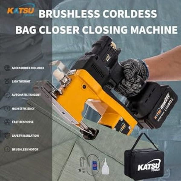 KATSU FIT-BAT 21V Brushless Cordless Sack Sealing Machine with 3.0Ah Battery and Charger, Portable Sewing Machine for Woven/Bags/Paper/Plastic Bags