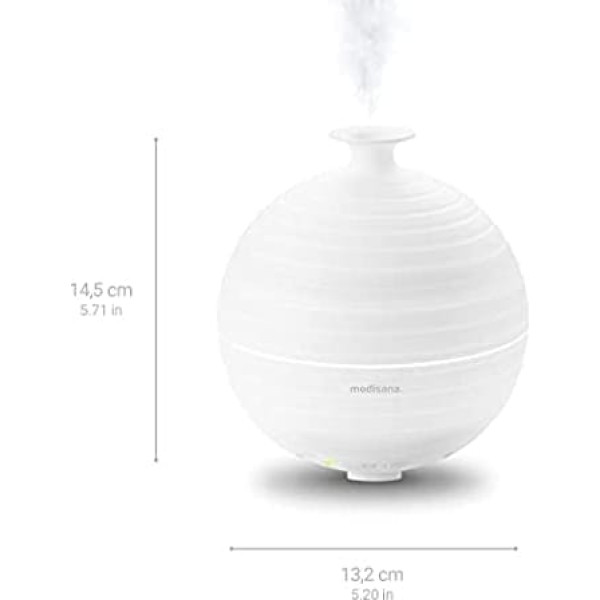 About this item This fits your . Make sure this fits by entering your model number. Well-being oasis: aromatherapy with fragrance and atmospheric colour changing. Our aroma diffuser runs almost silently and is therefore also ideal for bedrooms or children’s rooms. Wellness light: thanks to its gentle wellness light, which changes between 5 different colours, our aroma diffuser stimulates the different senses of the human body. Highly effective: using modern ultrasonic technology, the diffuser creates a micro-fine mist that distributes fragrance evenly throughout the room. Eye-catcher: The scented oil diffuser is also suitable as a humidifier in small rooms. Thanks to the timeless design, it fits perfectly in the office, spa or yoga rooms. Timer function: The timer can be adjusted between 2 or 4 hours’ operating time. If the 300 ml tank is empty, the device switches off automatically. › See more product details