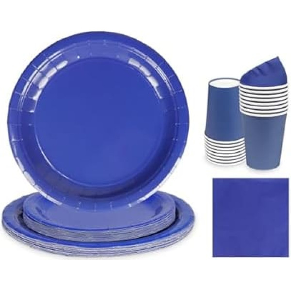 68 Piece Dark Blue Tableware Set, Navy Blue Paper Napkins, Cups, 7" and 9" Paper Plates in Plain Colour, Disposable Birthday Decorations for Him, Her, Men, Women, Kids, Boys