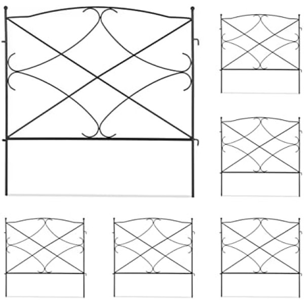 Flower bed border: the decorative fence set of 6 ensures clear boundaries between beds, lawns and paths Design: black flower fence with curved ornaments - decorative eye-catcher in the garden Flexible: string the fence elements of the flower bed edging together as required - max. Length: approx. 366 cm To start: place the garden fence in the ground with the ground spikes - with practical plant grid Details: iron fence - dimensions of each fence element H x W: approx. 60 x 59.5 cm - approx. 42.5 cm viewing height