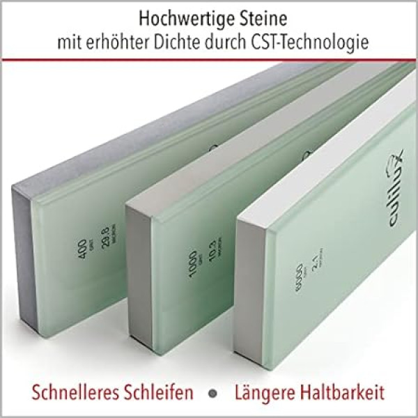 CULILUX® Pro Whetstone Professional Set XL Whetstones Grit 400 1000 6000 on Glass Double-Sided Leather Stripping Bench Non-Slip Abrasive Base with Silicone Holder Sharpening Aid Dressing Stone