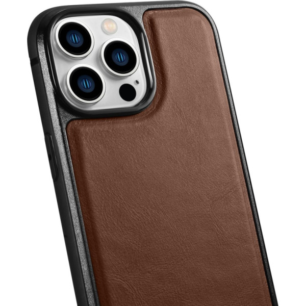 Icarer Korpuss pārklāts ar dabīgu ādu priekš iPhone 14 Pro Max Leather Oil Wax tumši brūns