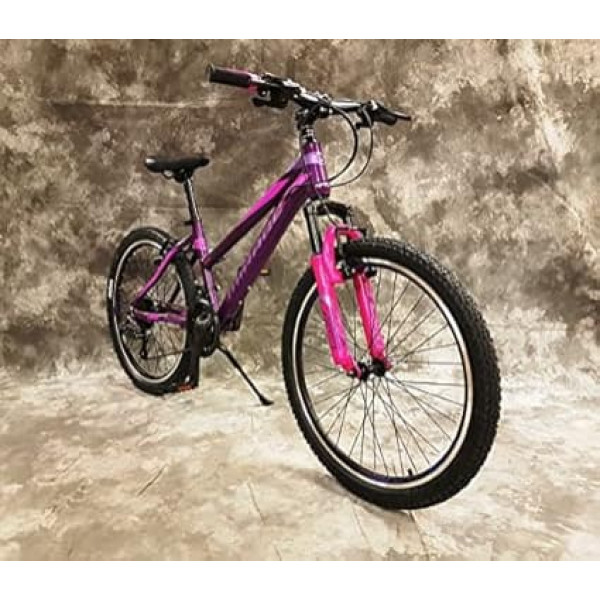 26 Inch Aluminium Women's MTB Spring-Loaded with 21-Speed Derailleur Gear Shimano Thumb Click Gear 2666-Lila-Pink