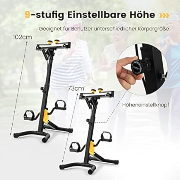 COSTWAY Arm and Leg Trainer, Pedal Trainer, Exercise Bike, Mini Stepper Fitness Bike, 9 Levels Adjustable & 53 x 43 x 73-102 cm, Ideal for Seniors