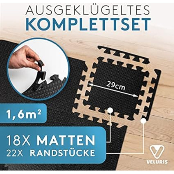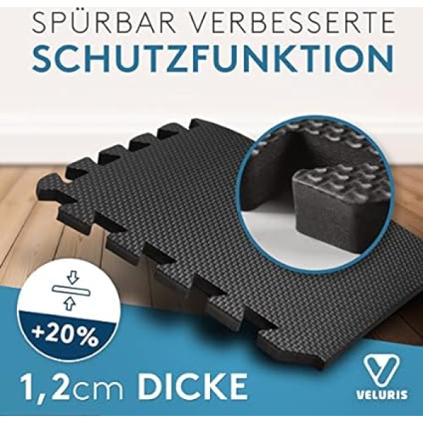 Veluris Floor Protection Mat Fitness Mat [31 x 31 cm] - 18 Extra Thick Floor Mats [20% More Protection] - Non-Slip Protective Mats Gym, Fitness Floor, Sports Floor, Pool Underlay, Fall Protection Mats