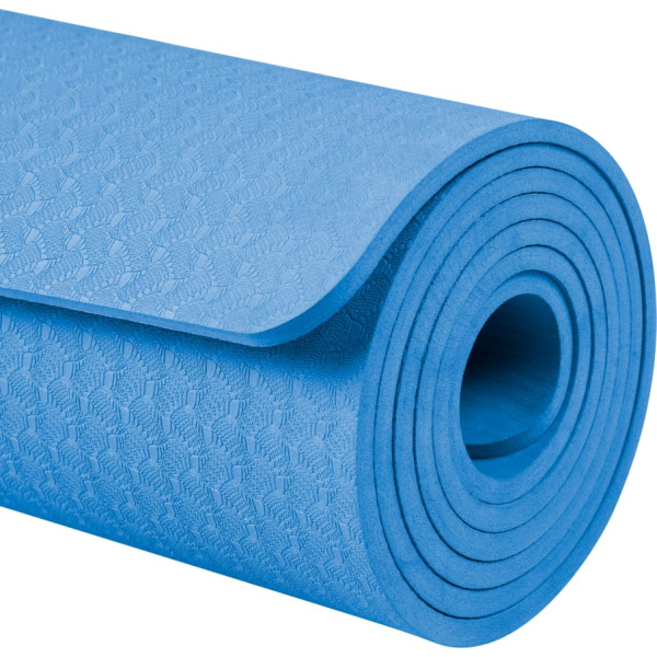 Vingrošanas paklājiņš jogai, pilates, fitnesam, 183x61cm, biezums 6mm, TPE materiāls, zils, REBEL ACTIVE