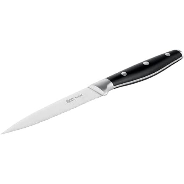 Tefal Jamie Oliver K26708 Steak Knife Set 24 cm 4-Piece Stainless Steel Steak Cutlery Set for 4 People, Steak Knife with Non-Slip Handles, Barbecue Utensils, Stainless Steel / Black, Silver