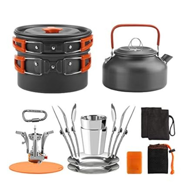 Awroutdoor Camping Cookware Set, Aluminium Camping Pots, Cookware, Portable Lightweight Mini Camping Stove For Outdoor Cooking, Camping, Backpacking, orange, m