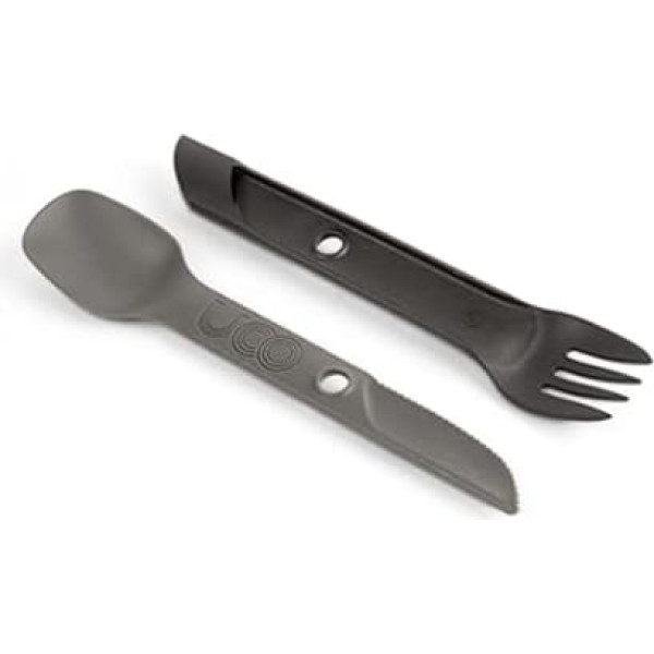 Made from durable, food-safe recycled polypropylene. Includes 1 reusable strap, 1 fork and 1 spoon/knife combination utensil. The 4-in-1 design provides spoon, fork and knife as well as a \; Product description The ultimate shape change is now ECO - made from recycled polypropylene. The Switch Spork stores compactly but transforms into a special spoon, fork and knife or telescope to form an extra long utensil, ideal for deep-walled containers such as freeze-dried meals in bags. Clips together into a single compact piece for storage and travel. Whether hiking in the cascades, picnics on the beach or when refuelling in the office, UCO goods makes meals on the go even more enjoyable.; Product description The ultimate shape change is now ECO - made from recycled polypropylene. The Switch Spork stores compactly but transforms into a special spoon, fork and knife or telescope to form an extra long utensil, ideal for deep-walled containers such as freeze-dried meals in bags. Clips together into a single compact piece for storage and travel. Whether hiking in the cascades, picnics on the beach or when refuelling in the office, UCO goods makes meals on the go even more enjoyable.; The ultimate shape change is now ECO - made from recycled polypropylene. The Switch Spork stores compactly but transforms into a special spoon, fork and knife or telescope to form an extra long utensil, ideal for deep-walled containers such as freeze-dried meals in bags. Clips together into a single compact piece for storage and travel. Whether hiking in the cascades, picnics on the beach or when refuelling in the office, UCO goods makes meals on the go even more enjoyable.