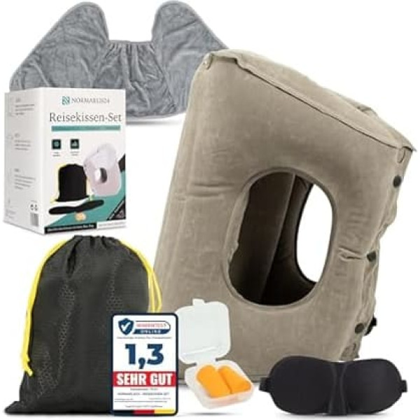 NORMARLIS24 Inflatable Travel Pillow Set: 3D Sleeping Mask, Ear Plugs with Bag/Multifunctional Pillow for Flight, Car, Train, Office, Travel Pillow Set