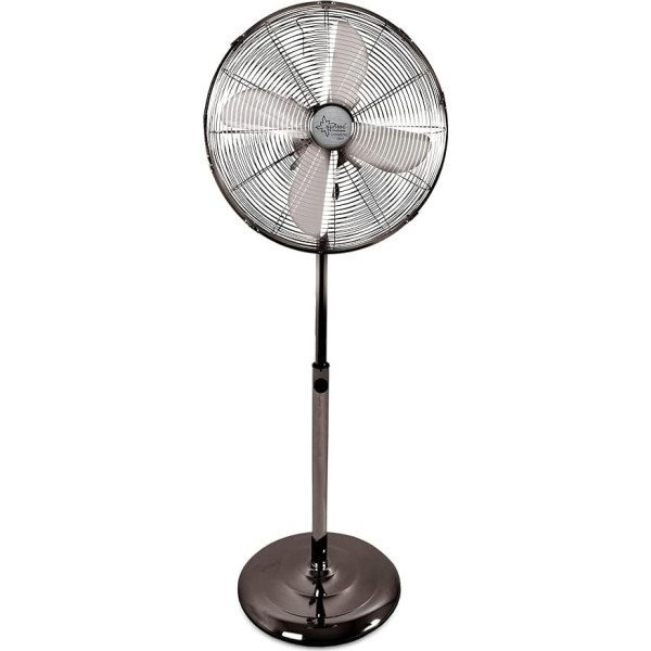 Stand Fan (blade diameter = 50 cm) in high quality metal design Standing base weight made of 100% recycled material 3 ventilation speeds (slow, medium, fast) Manual adjustment at any angle + Oscillating (which can be switched off) Height is freely adjustable (95 – 130 cm) › See more product details