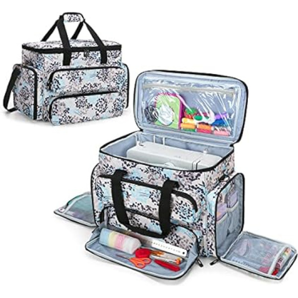 Main compartment: inner dimensions: 42 x 20 x 31.5 cm. The main compartment of the sewing machine bag with large capacity holds your sewing machine well. Transparent pocket on the top for storing sewing items such as tape measure, needles, scissors, etc. (sewing machine and accessories not included) External storage: front compartments for storing sewing items such as thread cords. Side compartments with mesh pockets and elastic pouches for personal items or other sewing items. Easy to carry: the bag can be easily transported anywhere thanks to the handle and removable shoulder strap. Also great is an option to hang the bag on the suitcase handle with trolley straps. Large opening with zip for easy access to the item. SUPERIOR PROTECTION The sewing machine carry bag is made of water resistant nylon material, which is sturdy and durable. The padded lining in the bag protects your sewing machine and accessories during transport. Great gift: the sewing machine bag is compatible with Singer, Brother and Janome and most other standard sewing machines. The sewing machine bag has a large capacity and is easy to carry. It is a great gift for beginners, dressmakers, hobbyists and seamstresses.
