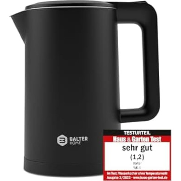 Balter WK-4 Stainless Steel Kettle, 1.7 Litres, Electric Kettle, Double Wall Design, BPA-Free, LED, Tea Maker Compact, Quiet (Black)
